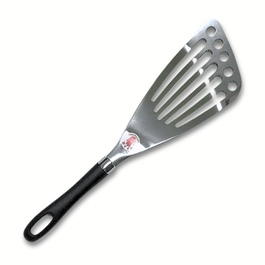 Der gelochte Pfannenwender ist langlebig, hitzebeständig und für Linkshänder und Rechtshänder geeignet.