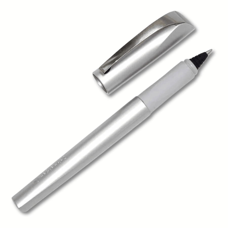 Dieser Tintenroller im eleganten Metallic-Look wurde so entwickelt, dass auch Linkshänder angenehm und sauber schreiben können.